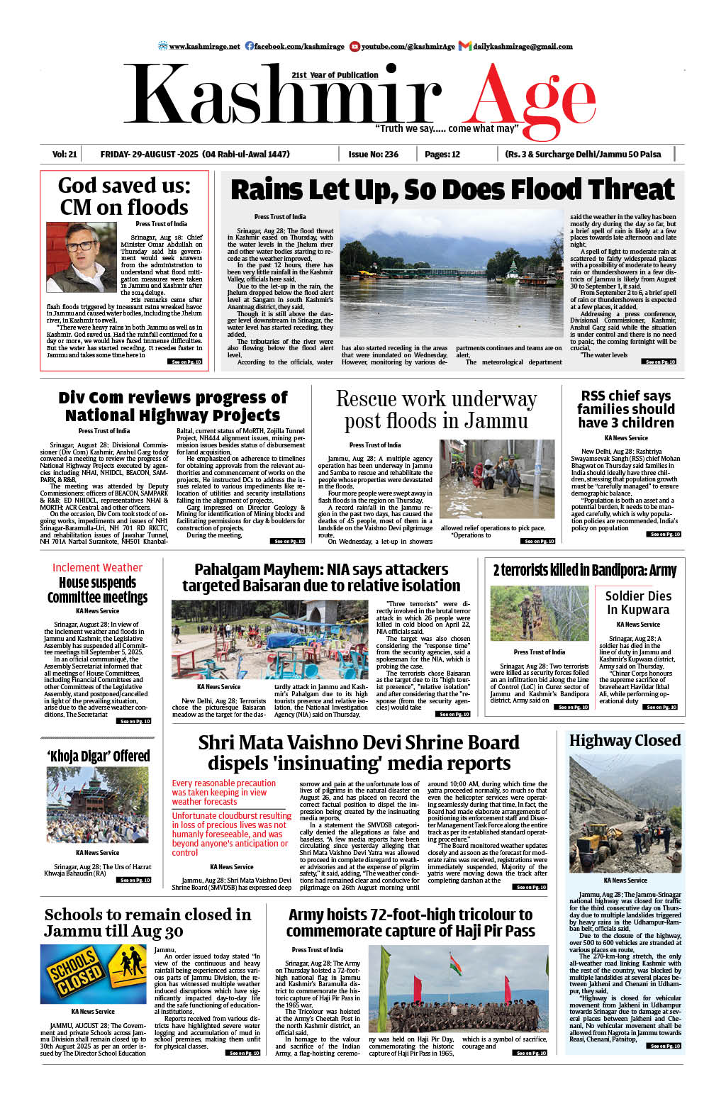 Kashmir Age Kashmir Age Go To Page: Page 1Page 2Page 3Page 4Page 5Page 6Page 7Page 8Page 9Page 10Page 11Page 12 × Kashmir Age << First << 1 2 3 >> Last >> 181221812018121181241812518127181231812818126181191813118129