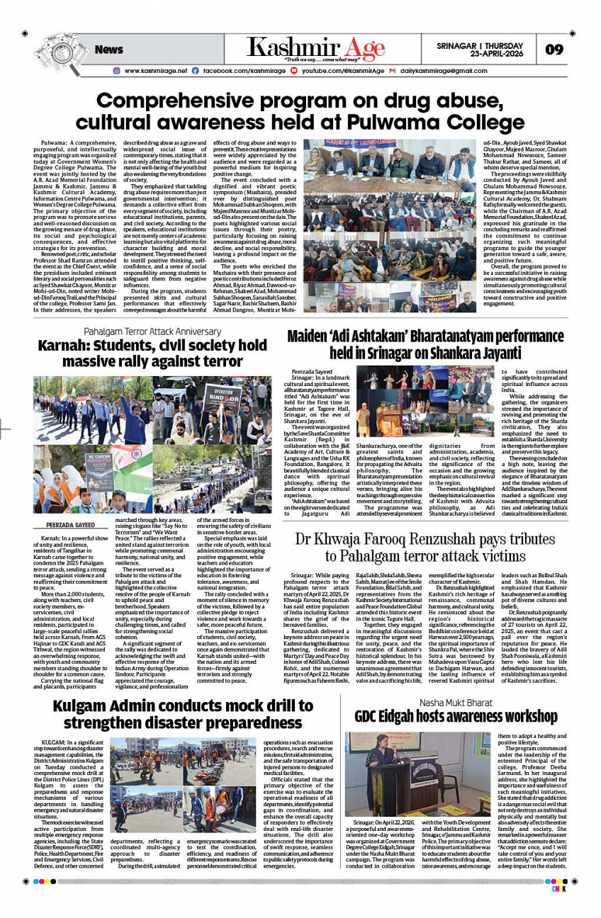 Kashmir Age Page: 9 Kashmir Age Go To Page: Page 1Page 2Page 3Page 4Page 5Page 6Page 7Page 8Page 9Page 10Page 11Page 12 × Kashmir Age << First << 8 9 10 >> Last >> 127312741275127612771278127912801281128212831284