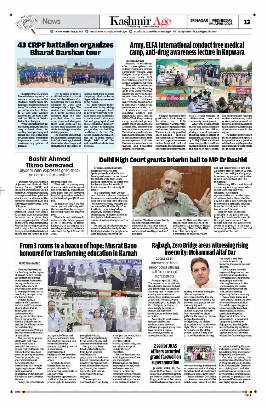 Kashmir Age Page: 12 Kashmir Age Go To Page: Page 1Page 2Page 3Page 4Page 5Page 6Page 7Page 8Page 9Page 10Page 11Page 12 × Kashmir Age << First << 10 11 12 >> Last >> 200620072008200920102011201220132014201520162017