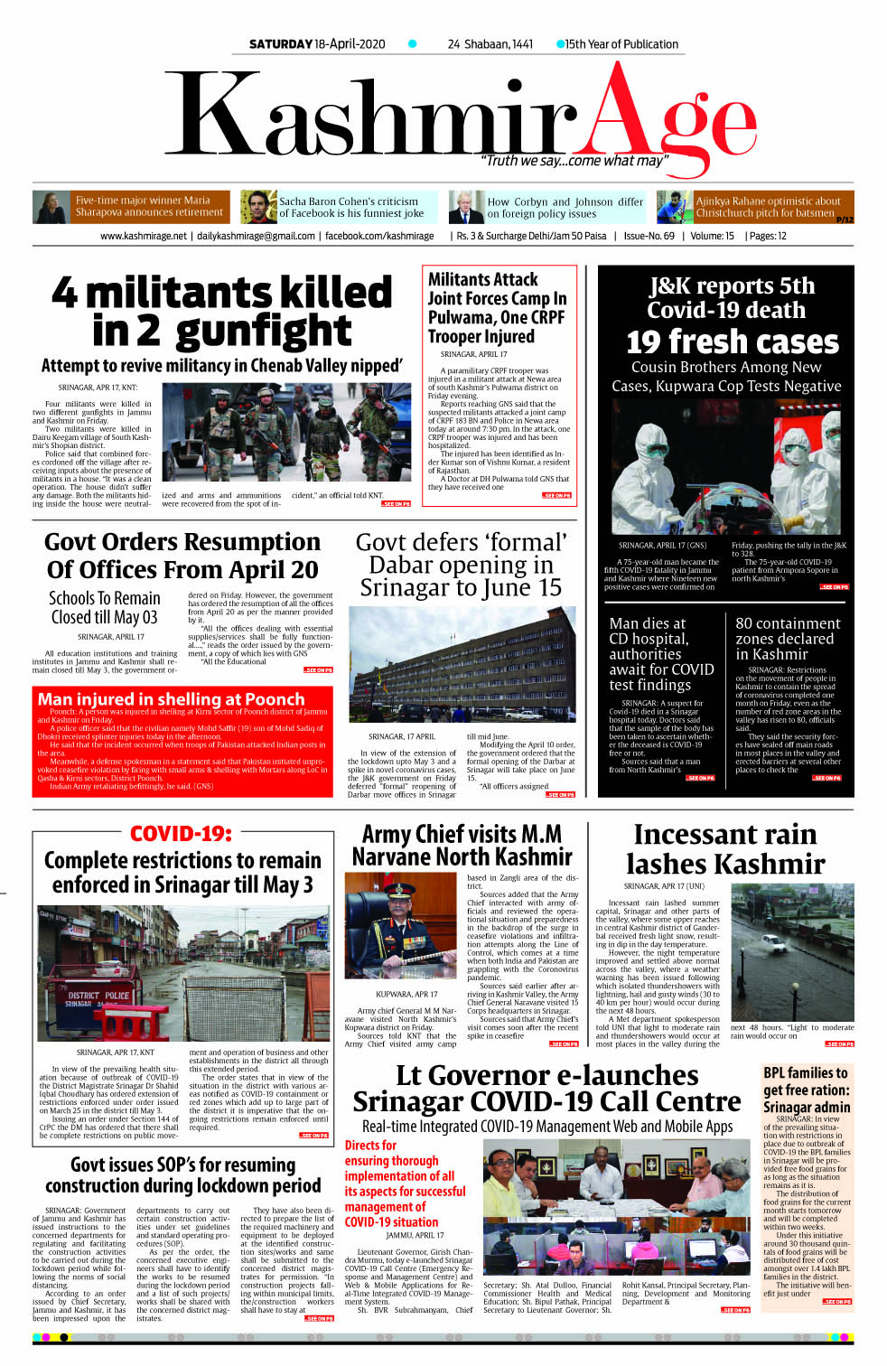 Kashmir Age Go To Page: Page 1Page 2Page 3Page 4Page 5Page 6Page 7Page 8 × Kashmir Age << First << 1 2 3 >> Last >> 12345678